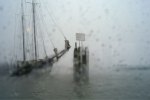 Plus loin, un triptyque shooté depuis la cabine d’un petit bateau bravant la tempête évoque, par-delà la froideur du sujet, un univers justement « disparu », avec ses couleurs qu’on dirait issues d’un épisode de Derrick, ou ce journal, imprimé en flamand, plié et déposé au premier plan, comme un indice trop évident, disposé là par le scénariste paresseux d’un téléfilm des années 70. Et, d’une photo à l’autre, on voit apparaître, puis disparaître, dans le mouvement des essuies-glace du bateau, une grue presque entièrement dissimulée derrière un rideau de neige, posée sur le quai d’un port de la Mer du Nord…