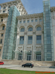 Et toujours, trônant à part, le Palais du Peuple, officiellement rebaptisé Palais du Parlement (le Sénat y siège). Rien moins que le second plus vaste bâtiment au monde, derrière le Pentagone (et considérant que la Muraille de Chine n’est pas un bâtiment à proprement parler). Chacun se fera son opinion, sur place ou sur photos, mais je trouve que ça aurait pu être pire, il est loin d’être aussi sinistre, massif et « stalinien » que ce à quoi on aurait pu s’attendre. Je n’ai pas de goût particulier pour le néo-classique, mais un effort a été fait pour orner le bâtiment, il y a un travail d’enjolivement sur les chapiteaux, les rambardes des terrasses, les frontons… Lorsque la journée est ensoleillée, le résultat est plutôt impressionnant et réussi.