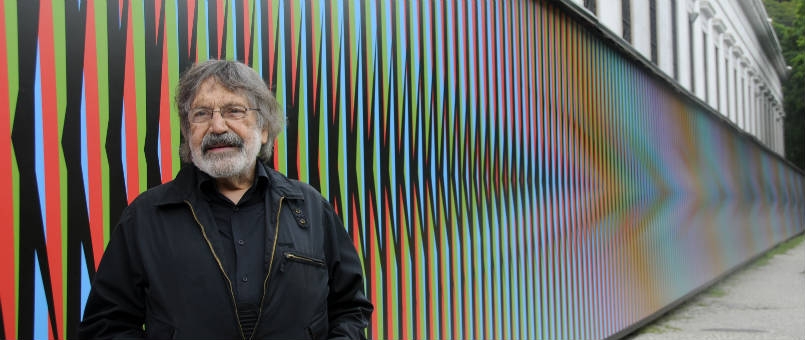 Tiens, quelle ironie : artiste vénézuélien de naissance, Carlos Cruz-Diez vit et travaille essentiellement à… Paris depuis 1960 ! Le Centre Pompidou, à 2mn en Vélib’ du bureau, lui a rendu hommage de nombreuses fois, et il m’aura fallu un déplacement à Buenos Aires pour le boulot pour faire connaissance avec son œuvre…